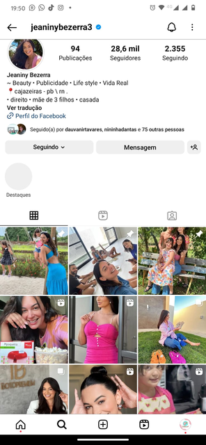 Meu nome é Jeaniny Bezerra, casada, mãe de três filhos, formada em Direito e atualmente trabalho como influencer digital na plataforma Instagram. Através das minhas postagens desperto o interesse de consumo e experiências da minha audiência utilizando a realidade da minha rotina e muita criatividade.